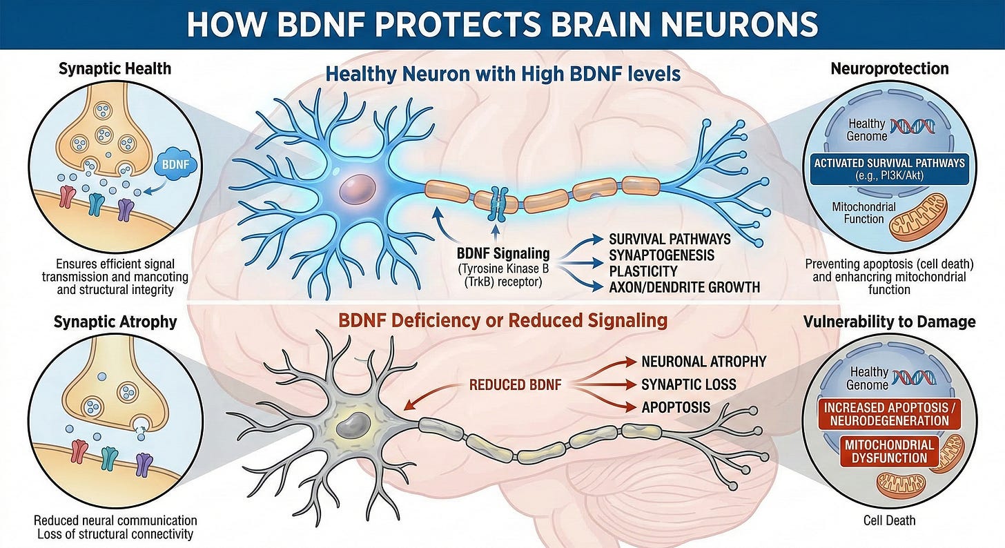 Aerobic exercise improves blood flow to the brain and increases brain derived neurotrophic factor (BDNF), which improves neuron health.