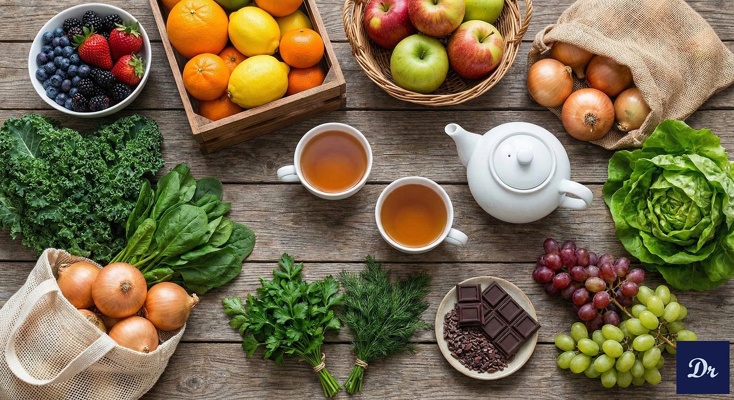 The only reason I use the word flavonoids instead of just plants is because there is always a company trying to sell you capsules and supplements. But my experience is that the real thing is better.