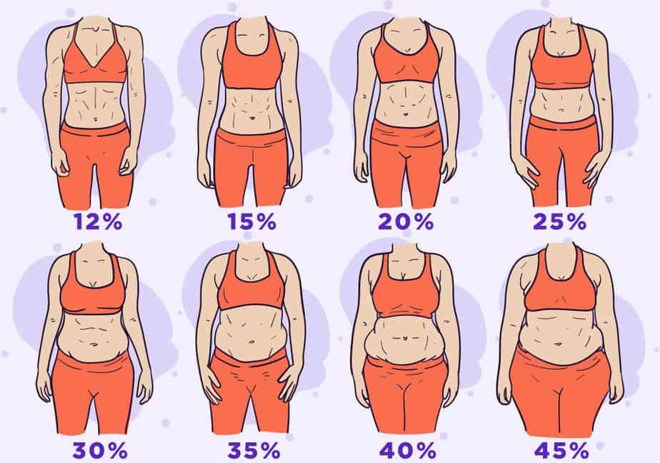 25%+: Rounder face, less definition overall, waist noticeably wider, more noticeable skin folds. Beyond this point visceral fat is usually present.